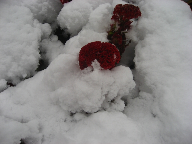 这我从雪堆里拯救出来的一朵鸡冠花
